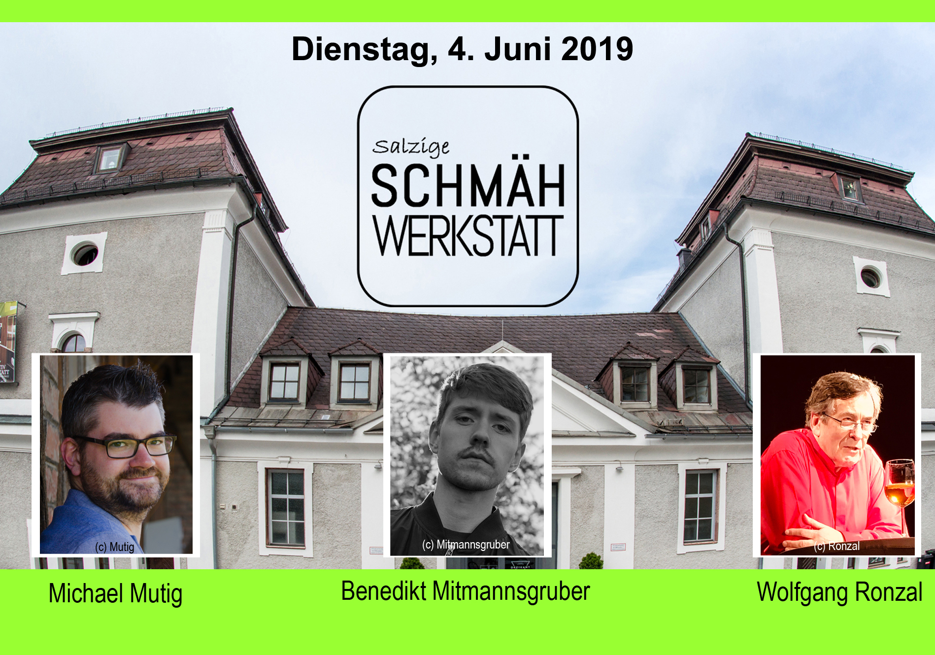 Der in Bayern geborene Michael Mutig, der Franke Christoph Maul und der Wiener Wolfgang Ronzal präsentieren sich und ihre Kurzprogramme bzw. Ausschnitte und sorgen damit für einen Abend mit Spaßgarantie.
